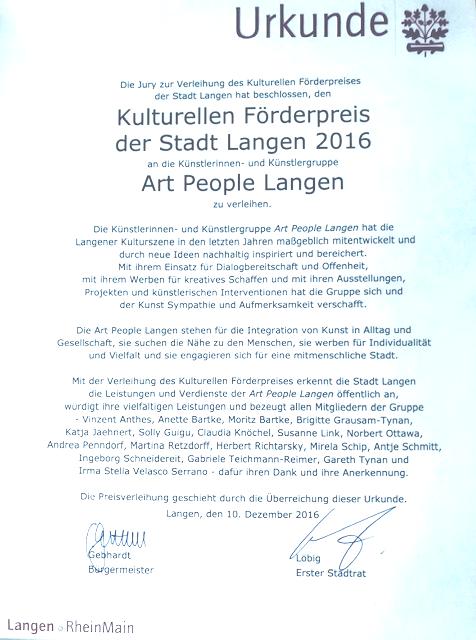 2016 Kultureller Förderpreis der Stadt Langen für die Art People